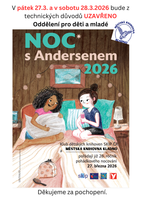 Nezapomeňte, že v pátek 27.3. a v sobotu 28.3.2026 bude z technických důvodů UZAVŘENO Oddělení pro děti a mladé MKKL. Děkujeme za pochopení.